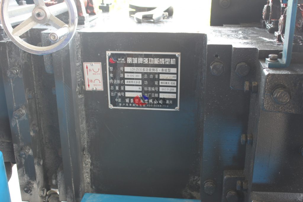這款LCK-25/30多功能側(cè)石二工位條紋成型機(jī),其主要功能是對(duì)澆筑成型的水泥模具進(jìn)行二次加工成型,其機(jī)器總功率為22.05KW,其傳送形式為調(diào)頻帶式步進(jìn),電源使用的標(biāo)準(zhǔn)為3N-50HZ 380V。