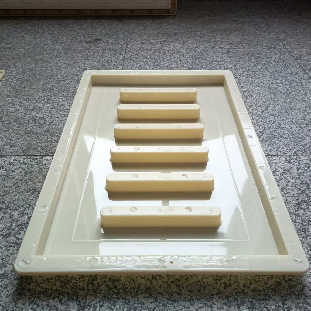 這款塑料雨水蓖模具厚度只有3cm,長寬尺寸為60cm*40cm,他主要用于下水、流水蓋板活性混凝土預(yù)制(RPC)預(yù)制,他的厚度較薄,與一般材質(zhì)的雨水蓋模具不同,他采用的材質(zhì)是ABS材質(zhì),這種材質(zhì)質(zhì)地比PP材質(zhì)硬,強度大,使用次數(shù)多,這種模具主要預(yù)制成型雨水蓋板,普通用于市政道路路面排水使用。他一共有六個排水孔,排水效果很好。水流效果比較好