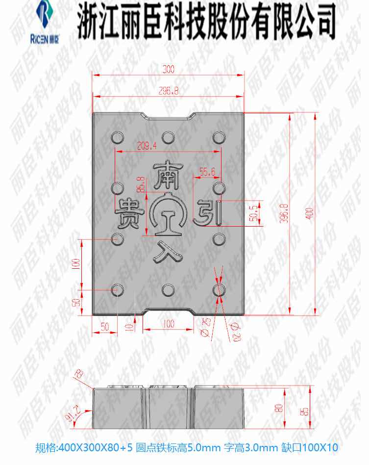 貴南引入系列蓋板,主要用于高鐵隧道蓋板定制系列、蓋板為缺口圓點帶鐵標(biāo)、板面帶字,為“貴南引入”。這款系列有三款尺寸蓋板尺寸分別為40cm*30cm、40cm*40cm、80cm*50cm、厚度相同為8cm厚,且三款模具的缺口也不同從小到大的尺寸缺口為10cm、20cm、30cm缺口,這款蓋板為2022年新生產(chǎn)的蓋板。
