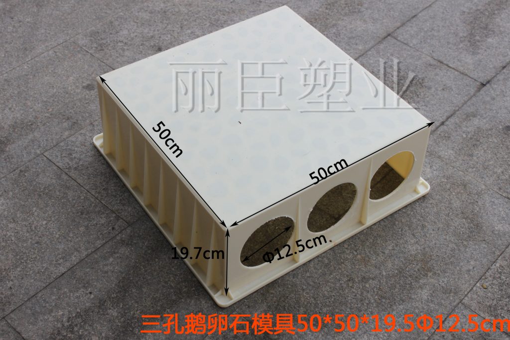 其中泄水管線纜槽模具整體外觀為正方形結(jié)構(gòu),長款分別是50厘米,高度為19.5厘米,六個(gè)貫通圓孔單一直徑為12.5厘米,具體細(xì)節(jié)指標(biāo)及樣式請參考下圖。