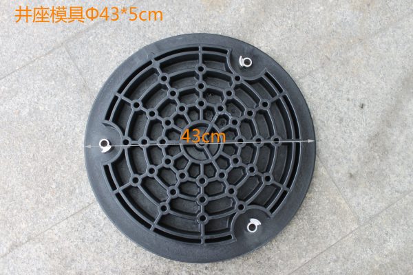 塑料井蓋表面主要以凸起小方格防滑設(shè)計(jì),井蓋上方共布置三個(gè)下水污水孔,底部則以扇形網(wǎng)狀結(jié)構(gòu)加強(qiáng)筋設(shè)計(jì),厚度約為5厘米,堅(jiān)固耐用,使用此污水塑料井蓋進(jìn)行施工鋪設(shè)有效保障實(shí)地安全性能。