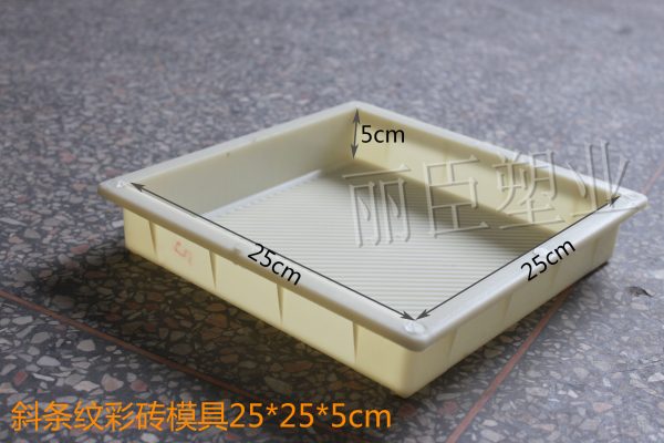 在這款步道磚塑料模盒在外觀設(shè)計上,通過改變形狀,花樣等,讓塑料彩磚模具制品在后期澆筑過程中能更好的使用。條紋的設(shè)計上改變以往橫向條紋的使用,以斜條紋樣式為彩磚模盒內(nèi)部的主要形狀,斜條紋的設(shè)計可以增大彩磚與行人與地面之間的接觸面積,即便是在下雨天出行時也不會打滑等現(xiàn)象,且還能美觀使用場所的環(huán)境,常用于城市、公園、社區(qū)等步行道上。