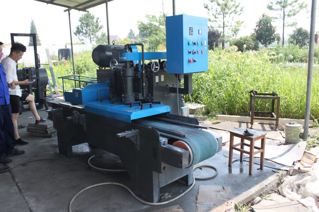 制作這臺(tái)多功能成型機(jī)的技術(shù)員在對(duì)這臺(tái)機(jī)器出廠前進(jìn)行了最后一步的調(diào)試,將澆筑成型的水泥磚放置輸送帶上,成型機(jī)入口處與出口處都有配置供水系統(tǒng),防止在制作過(guò)程中塵土飛揚(yáng),能對(duì)水泥制品打磨過(guò)程中其表面更為整潔統(tǒng)一。經(jīng)過(guò)平磨系統(tǒng)對(duì)水泥模具澆筑成型的水泥制品進(jìn)行磨形,后進(jìn)入第二系統(tǒng)對(duì)水泥磚塊制品就進(jìn)行拉條紋,這款多功能側(cè)石二工位條紋成型機(jī)打磨成型的條紋彩磚的外觀以34條紋為主。打磨成型后在有輸送帶將水泥磚運(yùn)輸出來(lái)。其使用過(guò)程中為防止施工過(guò)程中的安全事故的發(fā)生,通過(guò)使用電控箱的方式來(lái)對(duì)機(jī)器進(jìn)行急??刂?。
